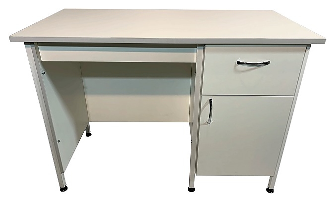 Стол лабораторный Мед Мебель СЛ 12.013 с РУ предназначен для организации рабочего места сотрудника медицинской лаборатории. Модель оснащена тумбой с дверцей выдвижным ящиком, перемычкой, придающей изделию дополнительную прочность, и регулируемыми по высоте ножками за счет винтовых опор-регуляторов. Каркас обеспечивает жесткость, устойчивость и прочность конструкции. Обшивка стола и столешница выполнены из ЛДСП, каркас - из стального профиля, покрытого порошковой краской. Стол поставляется с регистрационным удостоверением. Особенности: