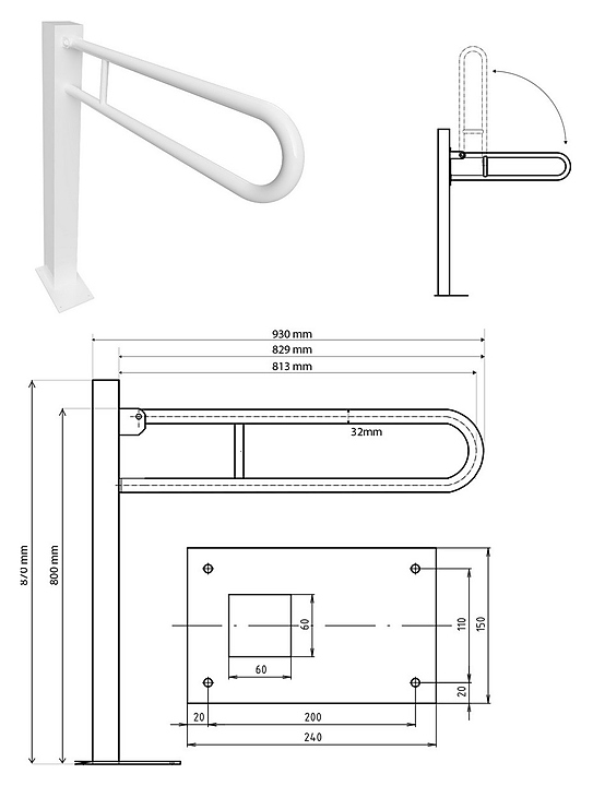 Откидной поручень Bemeta Help 301107604 используется в ванных и туалетных комнатах для дополнительной опоры для людей с ограниченными возможностями. Серия Help выполнена в современном стиле. Элегантные аксессуары этой коллекции идеально дополнят дизайн любой ванной комнаты. Модель крепится к полу на шурупы. Изделие выполнено из стали с матовым покрытием. Особенности: