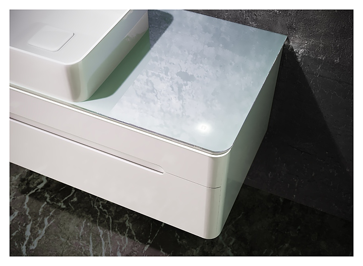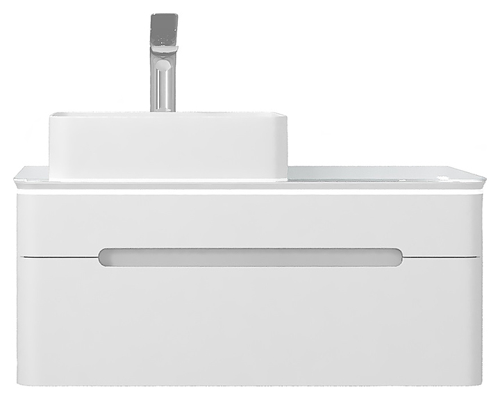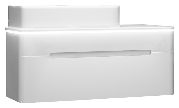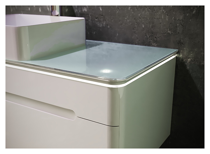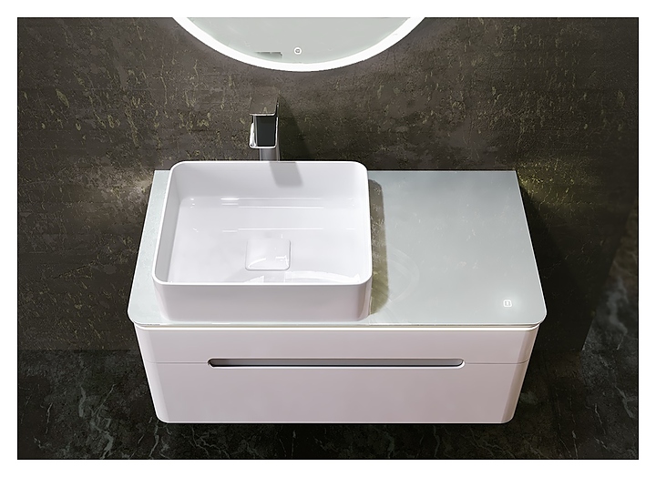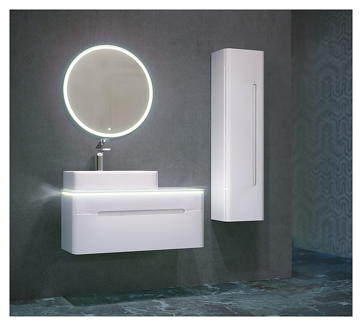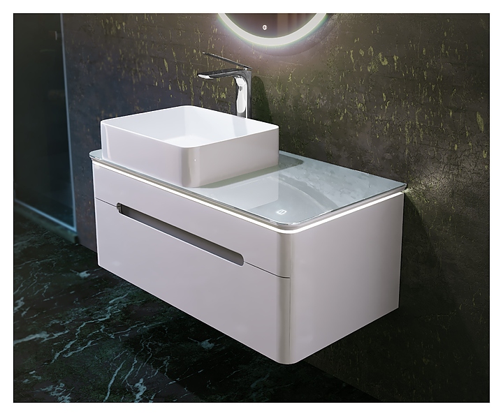 Тумба Jorno Shine 90 Shi.01.90/P/W сочетает в себе лаконичность и функциональность. Подвесная конструкция и отсутствие ножек создают иллюзию парения в воздухе и упрощают уборку. Столешница изготовлена из стекла Lacobel и подсвечена сенсорным выключателем с регулировкой яркости освещения. Корпус и фасад выполнены из МДФ и покрыты белой глянцевой ПВХ пленкой, предназначенной для использования во влажных помещениях, что обеспечивает изделию привлекательный внешний вид, а также износостойкость и долговечность. Тумба используется вместе с раковиной MELANA-7050H 0085176. Изделие поставляется с комплектом креплений. Особенности: