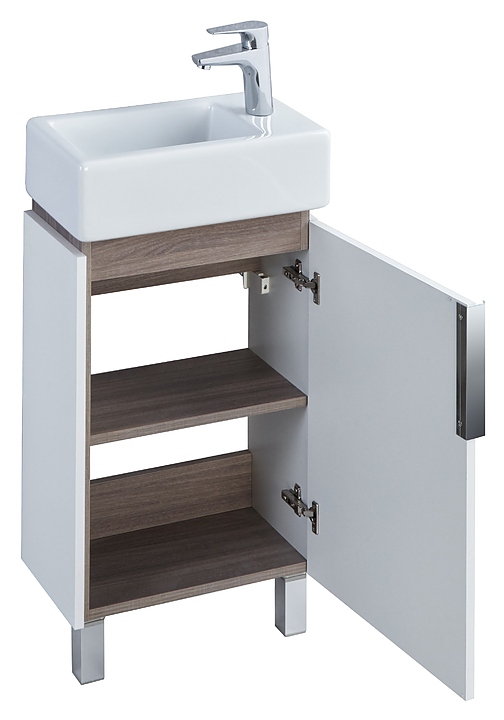 Тумба AQUATON Бэлла 1A221501BBAZ0 выполнена в современном стиле. Напольная конструкция обеспечивает легкий монтаж и не требует специального ремонта в помещении. Модель оснащена фасад-створкой с вертикально установленной ручкой, за которой находится регулируемая по высоте полка. Изделие выполнено из влагостойкой ЛДСП, окрашено белоснежной полиэфирной краской ультрафиолетового отверждения с внутренней отделкой в цвете джарра, что обеспечивает изделию привлекательный внешний вид, а также износостойкость и долговечность. Тумба используется вместе с раковиной Santek Эрис 46 1WH301972. Комплектация: