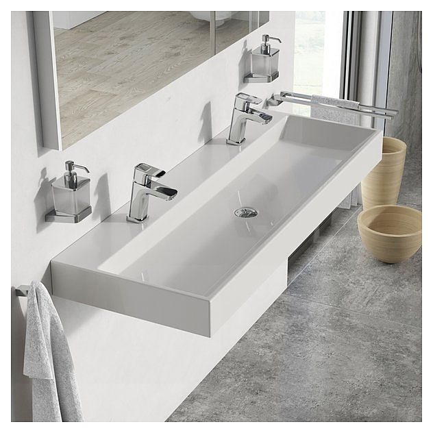 Раковина Ravak Natural Duo от популярного чешского бренда дополнит интерьер ванной комнаты. Благодаря подвесной конструкции раковина не занимает много места, что позволяет экономить пространство в небольшой ванной комнате, также возможна установка на мебель. Наличие 2 смесителей позволяет использовать раковину сразу двоим людям и обеспечивает большую гигиеничность и экономию времени. Размеры раковины позволяют избегать брызг и сохранять чистоту в помещении. Модель оснащена широкой задней поверхностью, на которой можно размещать необходимые аксессуары для ежедневного использования. Изделие выполнено из литого мрамора, который обладает повышенной прочностью и устойчивостью к негативным внешним факторам, а также долгое время сохраняет идеальную белизну и не впитывает запахи и грязь. Смеситель в комплект поставки не входит и приобретается отдельно. Особенности: