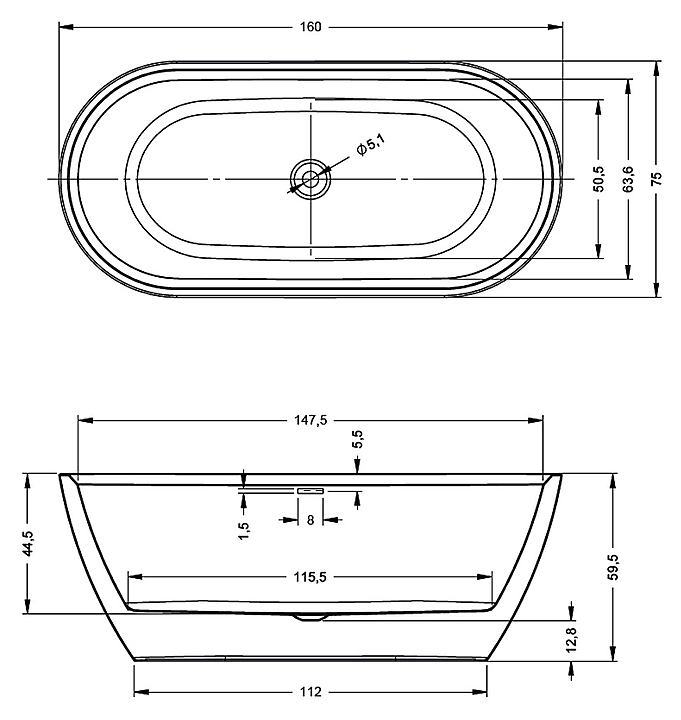 Ванна RIHO INSPIRE Velvet White 160x75 см, акрил
