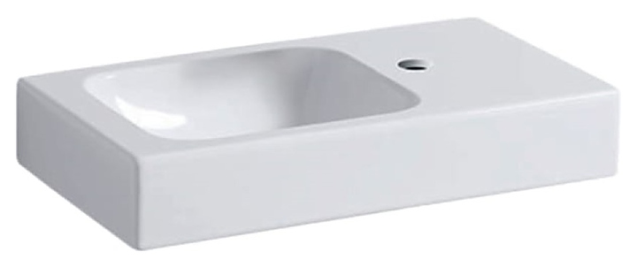 Подвесная раковина Giberit iCon 124053000 лаконичных форм легко вписывается в интерьер любой ванной комнаты. Благодаря подвесной конструкции раковина не занимает много места, что позволяет экономить пространство в небольшой ванной комнате. Модель оснащена боковой столешницей, на которой можно размещать необходимые аксессуары для ежедневного использования. Изделие выполнено из санфарфора, который обладает повышенной прочностью, устойчив к негативным внешним факторам, таким как грязь и запахи, а так же способен долгое время сохранять идеальную белизну. Раковина может использоваться с тумбой 840052000. Особенности: