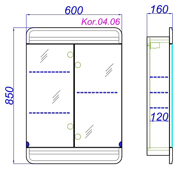 Шкаф зеркальный Aqwella Corsica Kor.04.06