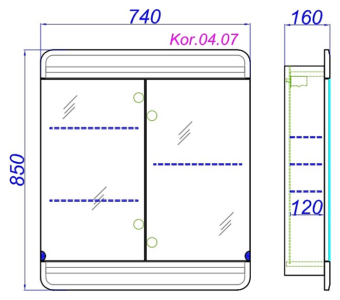Шкаф зеркальный Aqwella Corsica Kor.04.07