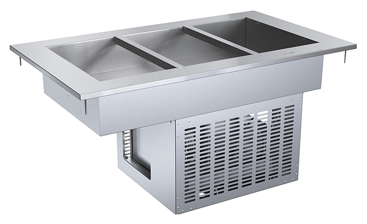 Охлаждаемый стол ATESY Регата ОС-1200-1540-02 используется на предприятиях общественного питания и торговли для кратковременного хранения и раздачи холодных напитков, салатов, кисломолочных продуктов и других блюд, требующих хранения в охлажденном состоянии. Модель представляет собой герметичную ванну для размещения гастроемкостей или напитков и продуктов в фабричной упаковке, а также тарелок с уже сервированными блюдами непосредственно на дне ванны. Модель выполнена из нержавеющей стали. В комплект поставки входят съемные перемычки из нержавеющей стали П-образной формы, позволяющие устанавливать гастроемкости формата GN 1/2 и GN 1/3. Гастроемкости в комплект поставки не входят и приобретаются отдельно. Особенности: