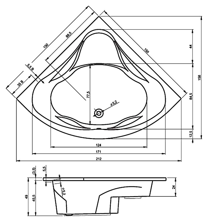Ванна RIHO NEO 150x150 см благодаря классическому дизайну и угловой форме отлично впишется в любую ванную комнату. Изделие выполнено из акрила, который мгновенно прогревается, обладает небольшим весом и высокими шумоизоляционными характеристиками, а также устойчив к механическим повреждениям, армированного стекловолокном с примесью полиэстра, дно усилено прочной ламинированной ДСП для большей прочности. Особенности: