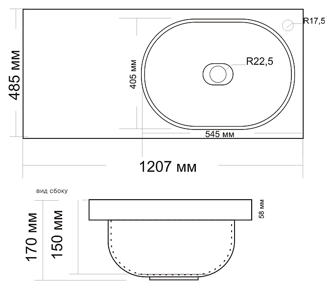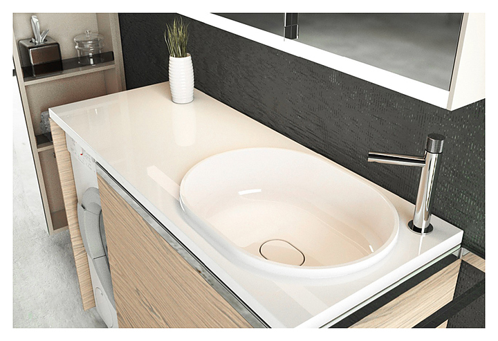 Раковина под стиральную машину Andrea BRUKS 120x480 см, правая, литьевой мрамор