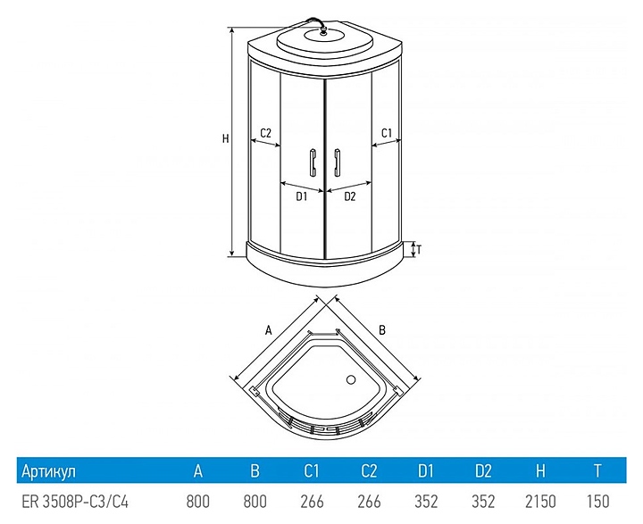 Душевая кабина Erlit ER3508P-C3-RUS 80x80x215 см