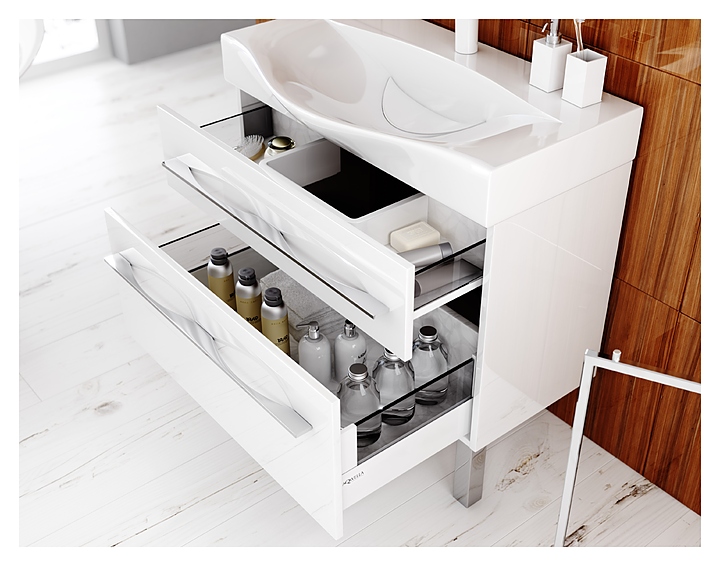 Тумба Aqwella Milan Mil.01.10/2n/W подходит к большинству интерьеров ванных комнат. Хромированные ножки позволяют ровно установить мебель на любой поверхности, а также упрощают уборку. Ящики тумбы оснащены скрытыми направляющими с системой полного выдвижения и мягкого закрывания. Корпус и фасады мебели выполнены из МДФ и покрыты глянцевой эмалью, что обеспечивает изделию привлекательный внешний вид, а также износостойкость и долговечность. Тумба используется вместе с раковиной Bergamo 1000. Для установки понадобится набор крепежей для монтажа на стену. Особенности:
