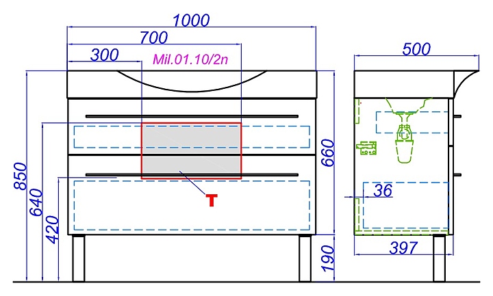 Тумба Aqwella Milan Mil.01.10/2n/W 100 см, белый