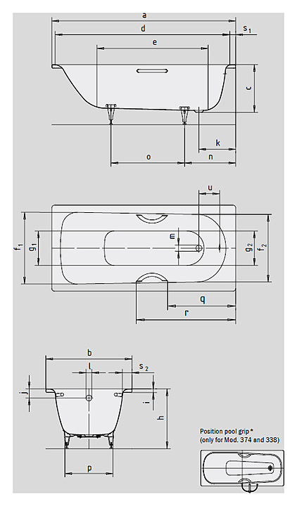• Расстояние от края ванны до центра сливного отверстия: 310 мм