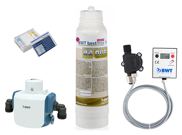 Стартовый комплект BWT Bestmax PREMIUM V используется на предприятиях общественного питания и торговли для фильтрации воды, используемой в кофемашинах, вендинговых аппаратах и другом борудовании HoReCa для приготовления напитков, а также защиты его от известковых отложений. Многоступенчатая очистка обеспечивает необходимое качество воды для приготовления блюд и напитков и удаление всех примесей. Перед использованием фильтра необходим пролив несколькими литрами воды в дренаж (количество литров согласно инструкции). Комплектация: