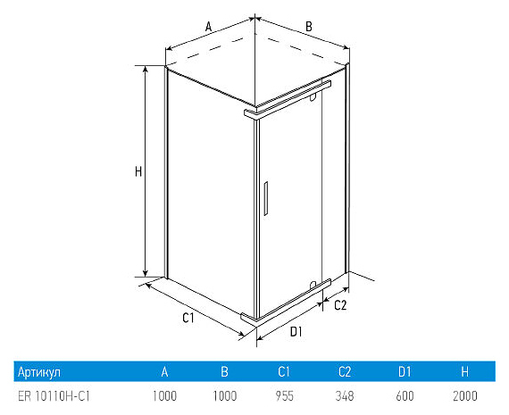 Душевой уголок Erlit ER10110H-C1 100x100x200 см