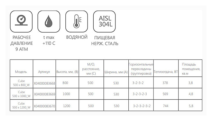 Полотенцесушитель Ravak Cube 500x1200_W 53x120 см, нержавеющая сталь