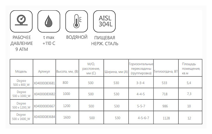 Полотенцесушитель Ravak Degree 500x1600_W 53x160 см, нержавеющая сталь