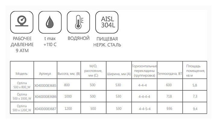Полотенцесушитель Ravak Optima 500x1000_W 53x100 см, нержавеющая сталь