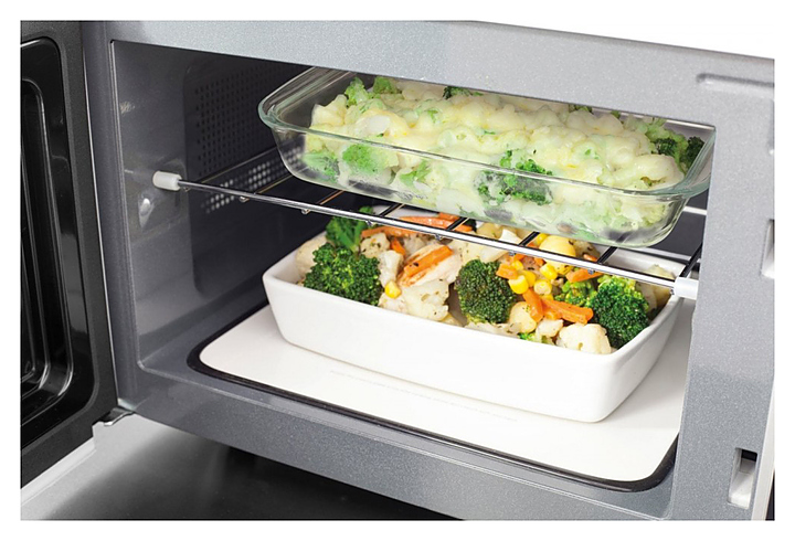 Микроволновая печь с грилем CASO BMG 20 Ceramic Electronic предназначена для разогрева, размораживания и приготовления продуктов в частных домах, квартирах, отелях и офисах. Модель оснащена цифровым дисплеем и грилем. Корпус выполнен из нержавеющей стали, передняя панель - из стекла, дно - из керамики. В комплект поставки входит решетка-подставка для гриля. Режимы работы:
