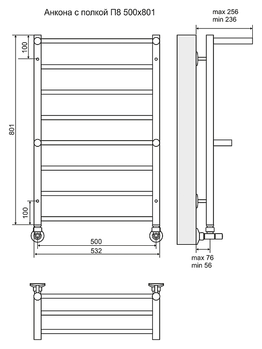 Полотенцесушитель Terminus Анкона П8 50x80,1 см, с полкой, нерж. сталь