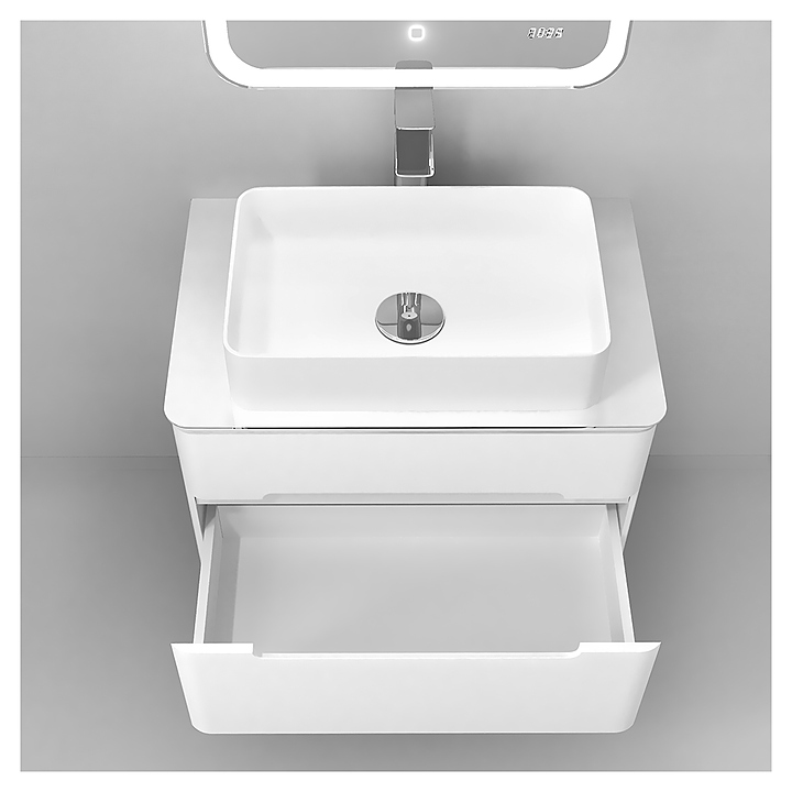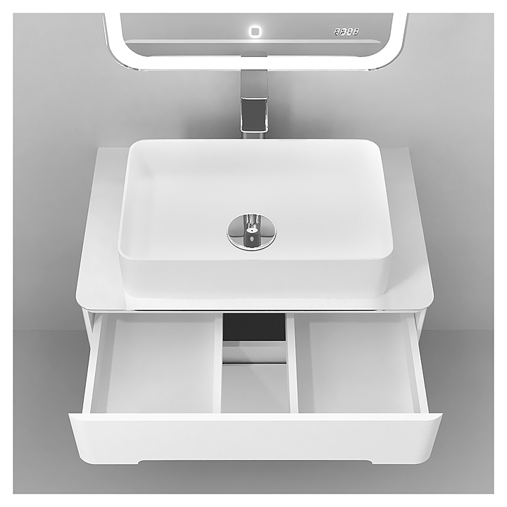 Тумба Jorno Bosko 75 Bos.01.75/P/W сочетает в себе лаконичность форм и мягкость образа, создает ощущение легкости и чистоты пространства ванной комнаты. Подвесная конструкция и отсутствие ножек создают иллюзию парения в воздухе и упрощают уборку. Поверхность столешницы из просветленного стекла Lacobel удобна и долговечна в эксплуатации. Интегрированные ручки не выступают за уровень фасада, что не только удобно экономит пространство, не цепляясь за одежду, но и сохраняет легкость образа, обеспечивая функционал открывания ящиков. Фасад и боковины тумбы выполнены из МДФ покрытого пленкой ПВХ, что делает тумбу влагостойкой. Тумба используется вместе с раковиной Олимпия 56 У18293. Изделие поставляется с комплектом креплений. Особенности: