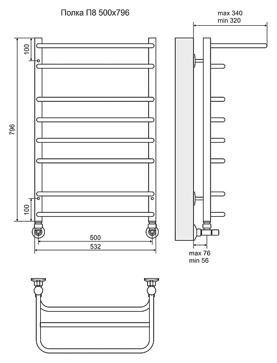 Полотенцесушитель Terminus Полка П8 50x79,6 см, с полкой, нерж. сталь