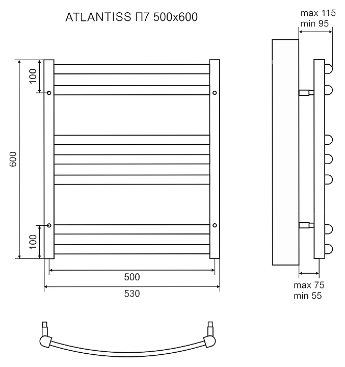 Полотенцесушитель электрический LEMARK Atlantiss П7 LM32607REBL 50x60 см, черный, левый/правый, нерж. сталь