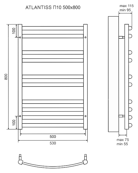 Полотенцесушитель электрический LEMARK Atlantiss П10 LM32810REBL 50x80 см, черный, левый/правый, нерж. сталь