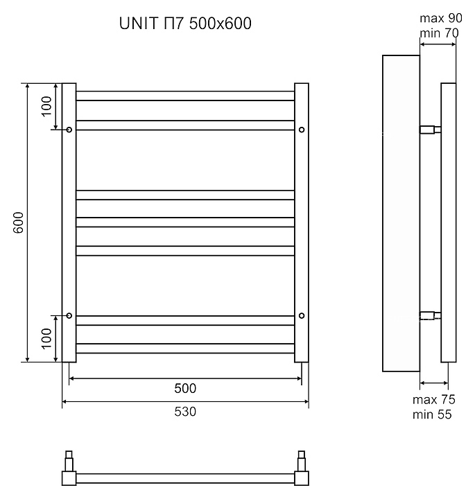 Полотенцесушитель электрический LEMARK Unit П7 LM45607EBL 50x60 см, черный, левый/правый, нерж. сталь