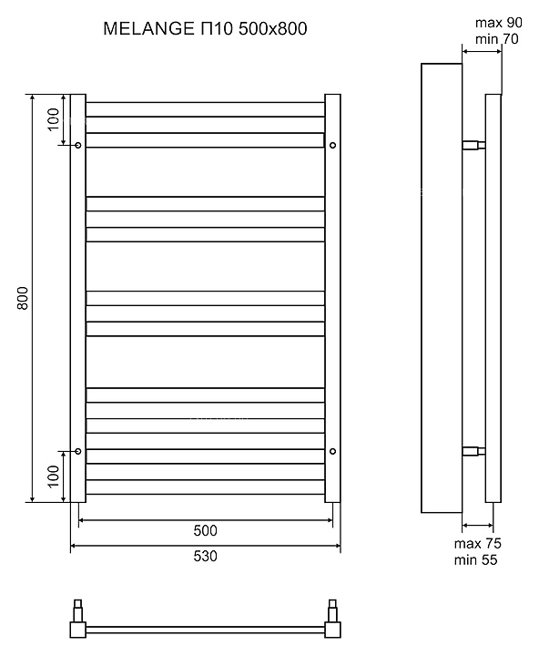 Полотенцесушитель водяной LEMARK Melange П10 LM49810W 50x80 см, белый, нерж. сталь