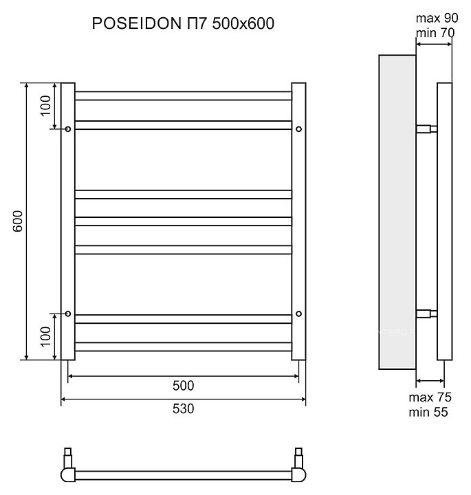 Полотенцесушитель водяной LEMARK Poseidon П7 LM42607 50x60 см, нерж. сталь