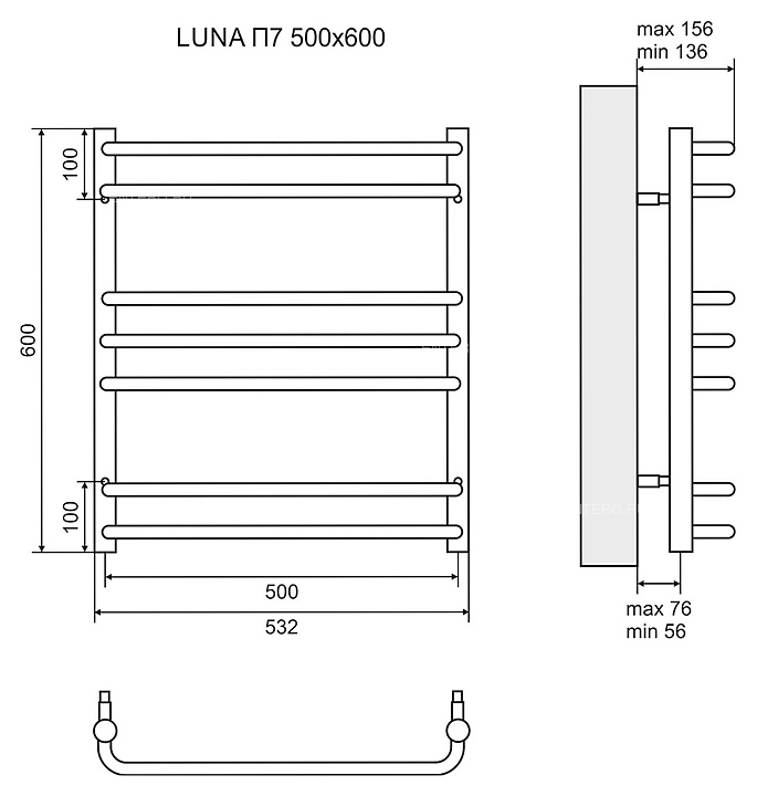 Полотенцесушитель водяной LEMARK Luna П7 LM41607 50x60 см, хром, нерж. сталь