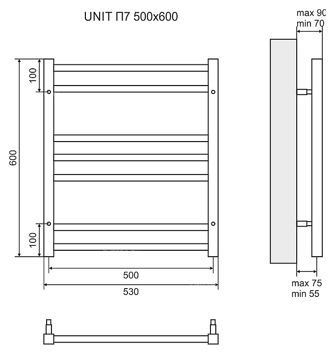 Полотенцесушитель водяной LEMARK Unit П7 LM45607 50x60 см, хром, нерж. сталь