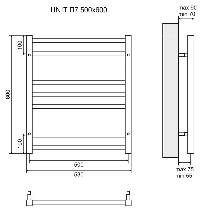 Полотенцесушитель электрический LEMARK Unit П7 LM45607E 50x60 см, хром, левый/правый, нерж. сталь