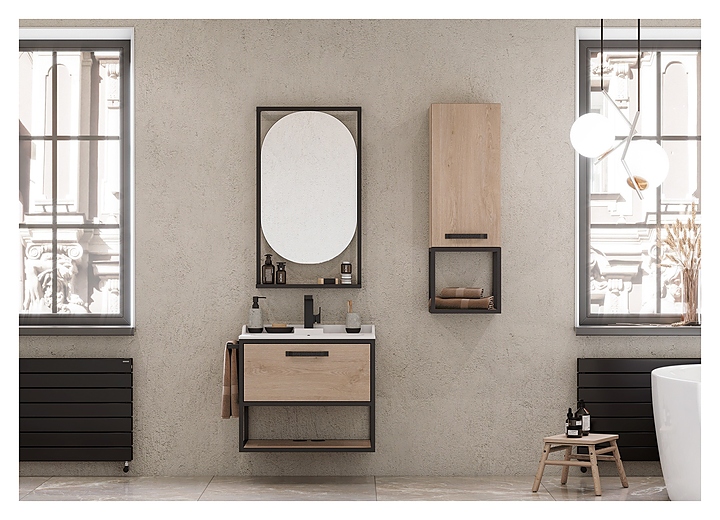 Зеркало AQUATON Лофт Фабрик 50 1A242502LTDU0 выполнено в современном стиле. Благодаря подвесной конструкции модель не занимает много места, что позволяет экономить пространство в небольшой ванной комнате, а также облегчает уборку. Модель оснащена открытой полкой в нижней части изделия, где можно хранить предметы декора и гигиенические принадлежности. Черные металлические профили в форме прямоугольника обрамляют овальное зеркало, под которым находится полочка из влагостойкой ламинированной плиты в цвете дуб эндгрейн, что обеспечивает изделию привлекательный внешний вид, а также износостойкость и долговечность. Для установки понадобится набор крепежей для монтажа на стену. Комплектация: