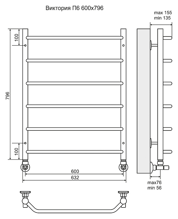 Полотенцесушитель Terminus Виктория П6 600x796 предназначен для подогрева и сушки полотенец, а также для обогрева ванных комнат в квартирах, коттеджах, частных домах. Модель отличается выступающей формой перекладин, которая обеспечивает высокую теплоотдачу. Корпус выполнен из нержавеющей стали AISI 304L, обеспечивающей защиту от влаги. Особенности: