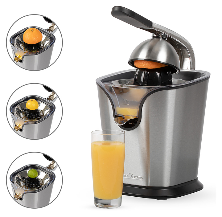 Cоковыжималка Profi Cook PC-ZP 1154 с ручным управлением предназначена для получения свежевыжатого сока апельсинов, лимонов и других цитрусовых в частных домах, квартирах, отелях и офисах. Модель оснащена мощным двигателем и ножками с присосками. Корпус, сетчатый фильтр и носик для слива выполнены из нержавеющей стали, рычаг - из алюминия, имеет специальное мягкое покрытие. Особенности: