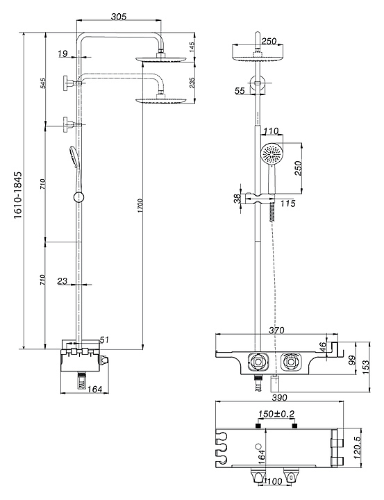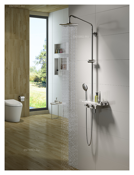 Душевая стойка LEMARK Tropic LM7008C с верхней душевой лейкой "Тропический дождь", термостатический, хром