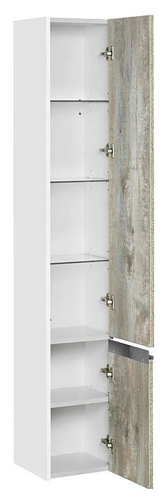 Подвесной пенал AQUATON Капри 1A230503KPDAR выполнен в современном стиле и отлично дополнит интерьер любой ванной комнаты. Благодаря подвесной конструкции модель не занимает много места, что позволяет экономить пространство в небольшой ванной комнате, а также облегчает уборку. Модель оснащена двумя дверями, за которыми находятся регулируемые стеклянные полки и открываются с помощью профильных хромированных ручек. Корпус изделия выполнен из влагостойкой ЛДСП и окрашен в белый цвет, а фасады из ВЛДСП в цвете бетон пайн, что обеспечивает изделию привлекательный внешний вид, а также износостойкость и долговечность. Комплектация: