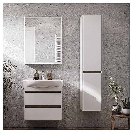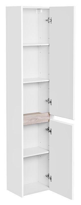 Подвесной пенал AQUATON Нортон 1A249403NT01R выполнен в современном стиле. Благодаря подвесной конструкции модель не занимает много места, что позволяет экономить пространство в небольшой ванной комнате, а также облегчает уборку. Модель имеет гладкую поверхность без выступающих элементов и оснащена двумя дверками, за которыми находятся полки для необходимых в ванной комнате принадлежностей. Изделие выполненого из влагостойкой ЛДСП и окрашено в белый глянцевый цвет полиэфирной краской ультрафиолетового отверждения, а декоративная вставка в цвете дуб эндгрейн, что обеспечивает изделию привлекательный внешний вид, а также износостойкость и долговечность. Для установки понадобится набор крепежей для монтажа на стену. Особенности: