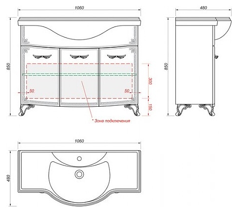 Тумба КАКСА-А Классик-Д 003967 105 см, белый с золотом