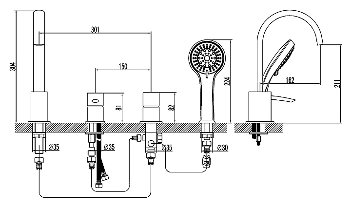 Смеситель для ванны и душа LEMARK Atlantiss LM3241C встраиваемый на борт ванны, 4 отверстия, хром