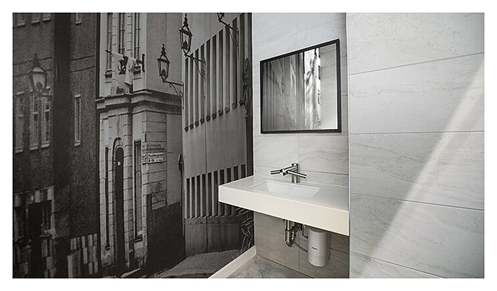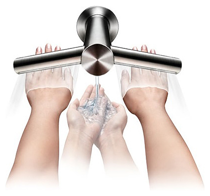 Смеситель-сушилка Dyson Airblade Wash + Dry используется в туалетных комнатах кафе, баров, ресторанов, торговых центров, офисов и других общественных мест для мытья, быстрой сушки и дезинфекции рук. Изделие совмещает в себе функции классического смесителя и сушилки для рук, тем самым позволяя сэкономить пространство туалетной комнаты и избежать случайного попадания воды на пол. Корпус выполнен из матовой нержавеющей стали, корпус двигателя - из ABS-пластика. Особенности: