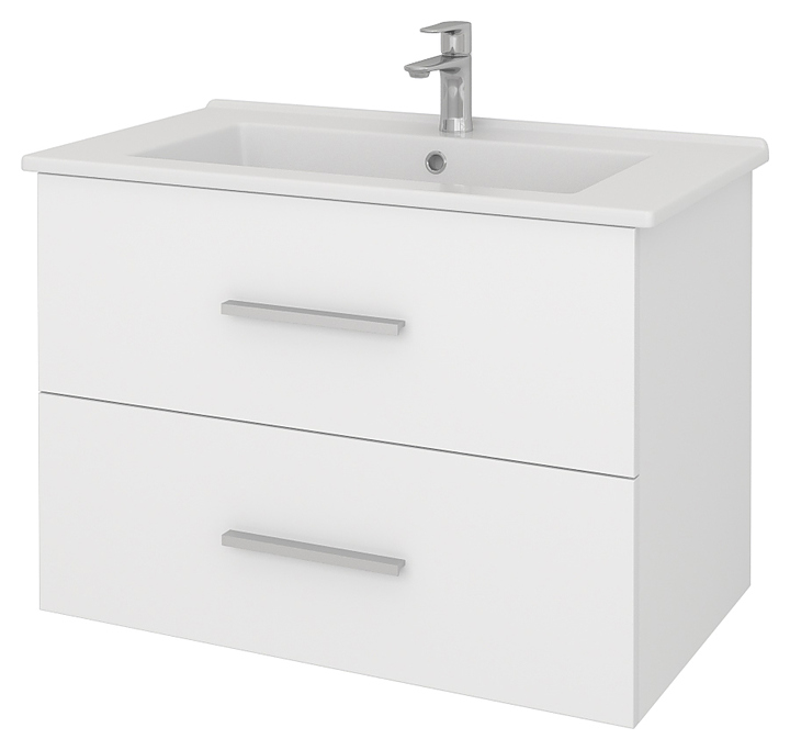 Тумба КАКСА-А Практик 004571 выполнена в модном, современном стиле. Имеет подвесную конструкцию и не занимает много места, что позволяет экономить пространство, а также облегчает уборку. Модель оснащена двумя ящиками на направляющих скрытого монтажа с доводчиками, верхний ящик с вырезом под сифон. Корпус выполнен из белого ДСП, фасад из высокоглянцевой плиты ALTERNATIVE по технологии горячего вакуумного прессования, лицевая сторона - высокоглянцевый пластик ПВХ Renolit. Тумба используется вместе с раковиной Оскар 750 004371. Особенности: