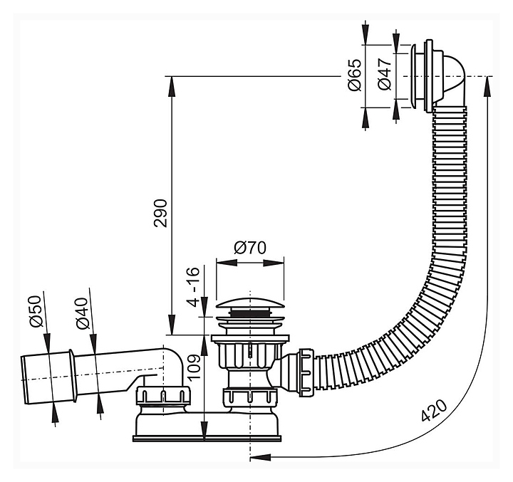 Сифон Ravak Sabina 50 подходит для глубоких поддонов с сиденьем Sabina. Особенности: