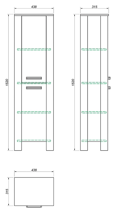 Универсальный пенал КАКСА-А Лидер 004577 выпонен в современном, лаконичном стиле и подходит для любого интерьера. Изделие устанавливается на ножки, что позволяет защитить конструкцию от воздействия влаги в случае намокания пола, а также облегчает уборку. Оснащен тремя полками для хранения ванных принадлежностей. Проходные вертикальные стойки облицованы декоративным кромочным пластиком толщиной 2 мм, несут декоративное и конструкционное назначение. Они опираются на скрытые угловые опоры, позволяющие отрегулировать пенал на неровном полу. Фасады и корпус изделия выполнены из ламинированной ДСП с древесной текстурой, которая отличается долговечностью и экологичностью, а также предохраняет от загрязнения и защищает от влаги. Особенности: