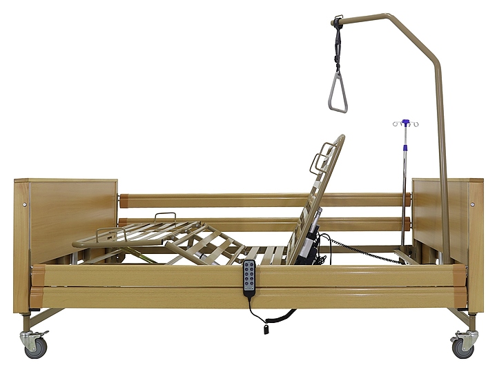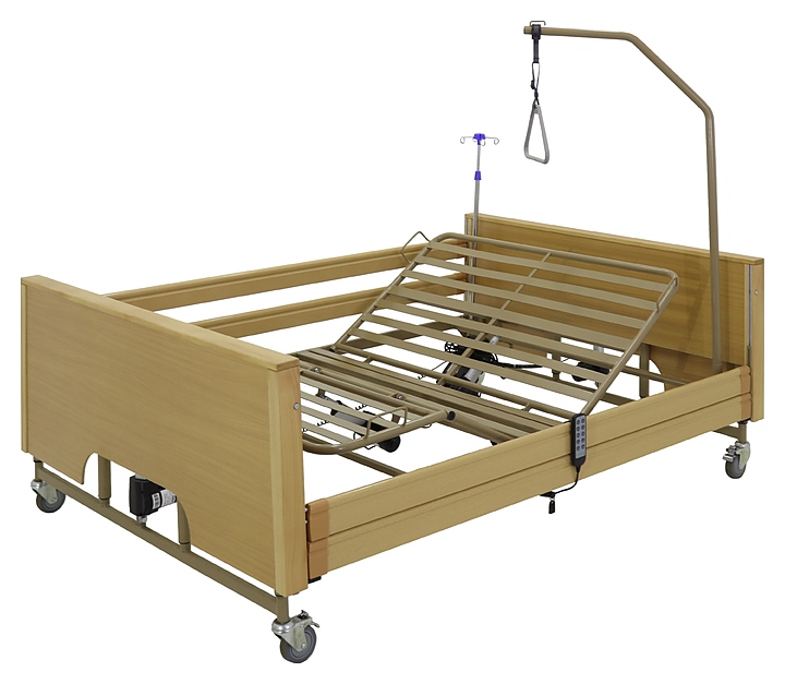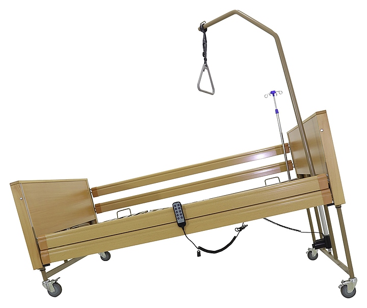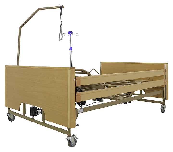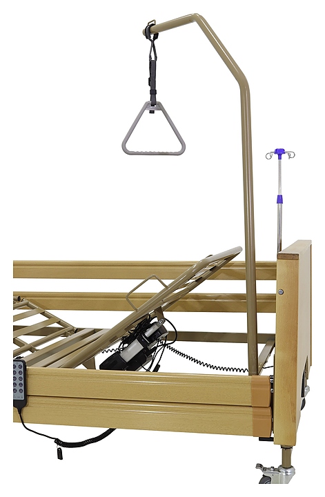 Медицинская кровать электрическая Med-Mos YG-1 используется в учреждениях здравоохранения для более комфортного пребывания в больнице лежачих больных с проблемами опорно-двигательного аппарата и пациентов, которые проходят процесс реабилитации после перенесенных операций или тяжелых заболеваний. Модель оснащена пластиковыми торцевыми элементами на боковых ограждениях, индикатором режима работы и индикатором заблокированного/разблокированного состояния на пульте управления пациента. Ложе и каркас выполнены из сварных конструкций из профильных труб из высокопрочной стали, покрытых ударопрочной эпоксидной эмалью, ограничители - из стального прутка, торцевые спинки - из стального каркаса с облицовкой из массива бука, боковые ограждения - из алюминиевого профиля, покрытого декоративной пленкой под дерево, колеса - из полиуретана, дуга для подтягивания и инфузионная стойка - из нержавеющей стали с элементами из пластика. Кровать поставляется с регистрационным удостоверением Минздрава РФ. Комплектация: