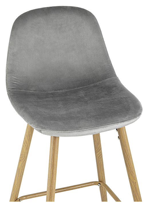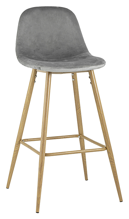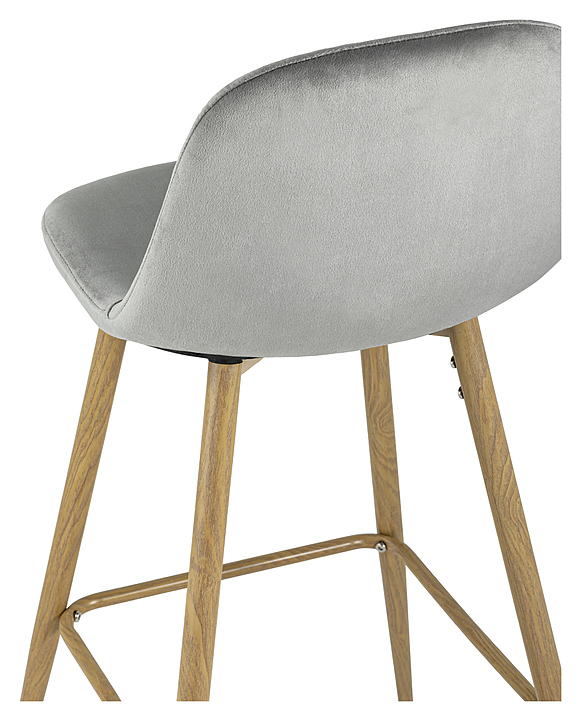 Стул Stool Group барный Валенсия велюр серый ножки цвет дерево предназначен для для меблировки кухни жилого помещения, а также в кафе и ресторанах. Модель выполнена в современном стиле и оснащена мягким сиденьем и мягкой спинкой. Опора и ножки стула выполнены из металла, окрашенного в цвет дерева, обивка - мебельный велюр. Особенности: