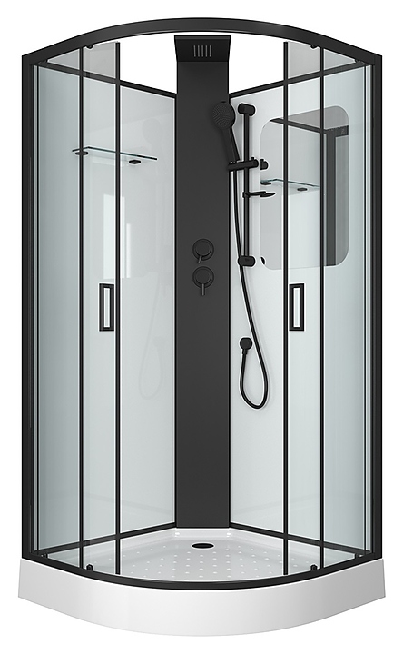 Душевая кабина Grossman Elegans GR251 90х90 см предназначена для использования в ванных комнатах. Модель оснащена бесшумными двойными верхними и нижними роликами из нержавеющей стали в пластиковом антикоррозийном кожухе. Невысокий поддон и две раздвижные двери позволяют комфортно входить и выходить из кабины. Для безопасности пользователя внутренняя поверхность поддона имеет нескользящее покрытие, а стенки и двери выполнены из закаленного стекла. Внутри кабины верхний и ручной душ, зеркало, интегрированное в заднюю стенку. Наличие полки обеспечивает максимальный комфорт при приеме душа, размещаяя на ней необходимые мыльные принадлежности. Поддон выполнен из акрила, устойчивого к механическим повреждениям, обладающего небольшим весом и повышенной шумоизоляцией. В комплект поставки входят полочка, зеркало, ручной душ 150 см со штангой, верхний душ, сифон, смеситель. Особенности: