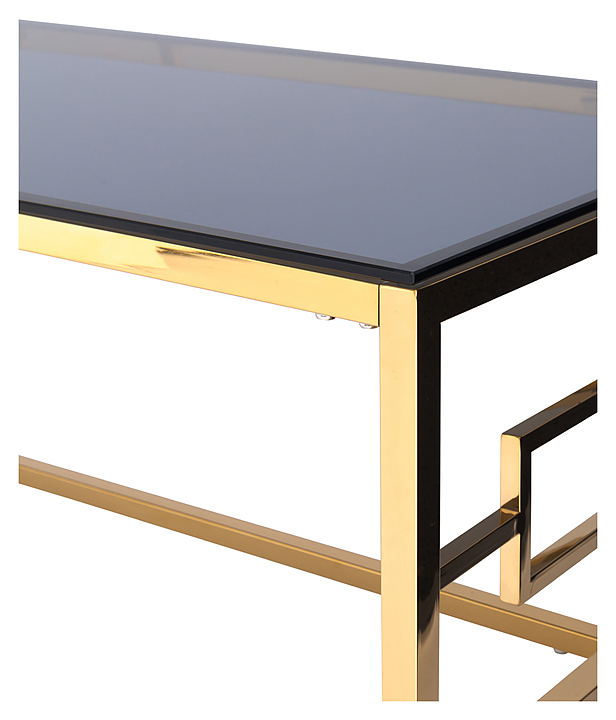 Журнальный стол Stool Group 120*60 Бруклин золото стекло smoke предназначен для использования на даче, дома, а также в кафе и ресторанах. Каркас стола изготовлен из нержавеющей стали, столешница из закаленного стекла. Дополнительные характеристики: