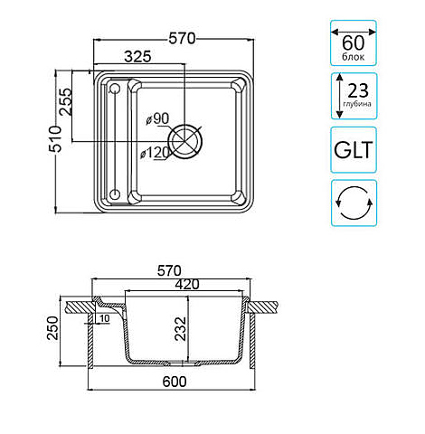 Кухонная мойка AQUATON Беллис 1A724932BS230 57 выполнена в современном минималистичном стиле. Модель оснащена одной увеличенной глубокой чашей, в которой можно помыть сковородки, кастрюли, противни и другую посуду любого размера. Оборачиваемость мойки позволяет при установке выбрать расположение крыла слева или справа. Корзинчатый вентиль, расположенный в сливном отверстии, выполняет функцию фильтра. Изделие выполнено из литого мрамора, обладающего высокими бактерицидными свойствами и устойчив к резким перепадам температур. Комплектация: